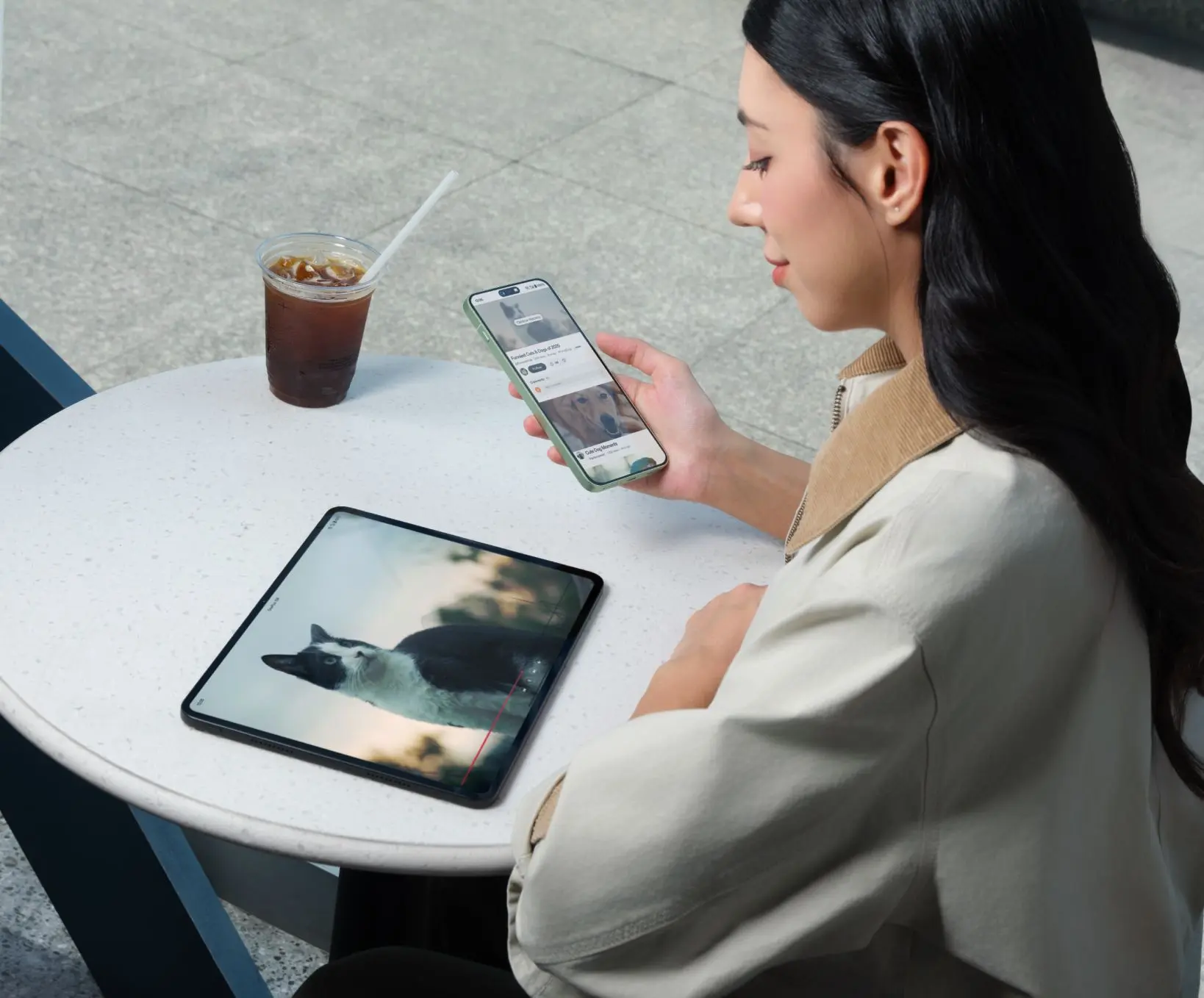 Два экрана. Одно рабочее пространство. Никаких сложностей. Перетаскивайте файлы, фотографии и видео между телефоном и планшетом OnePlus.